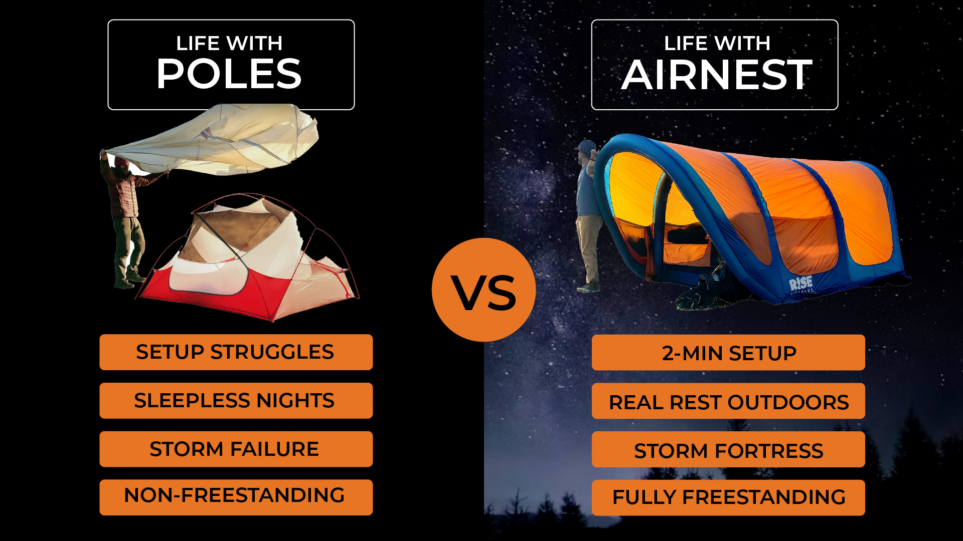Most tents mean stress, poles, and wasted time. The AirNEST means none of that.